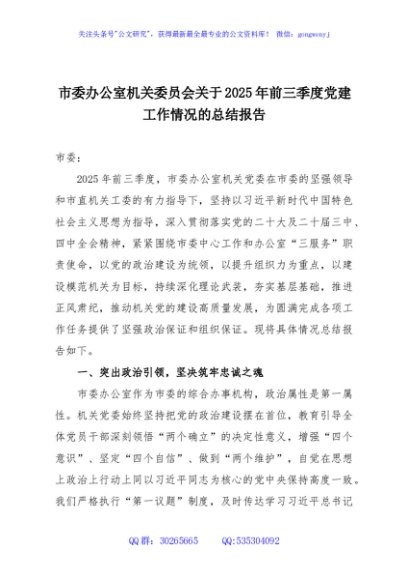 / 市委办公室机关委员会关于2025年前三季度党建工作情况的总结报告
