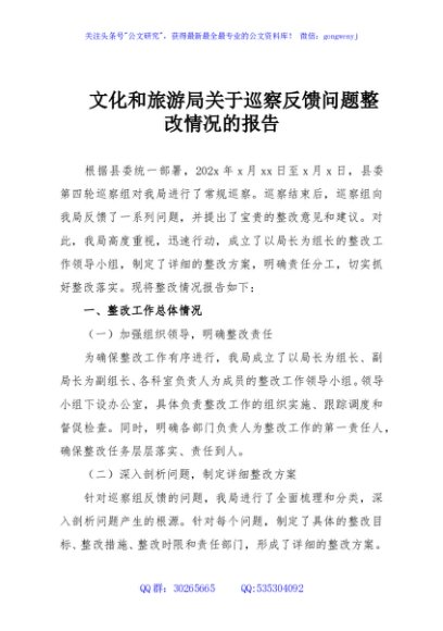 / 文化和旅游局关于巡察反馈问题整改情况的报告