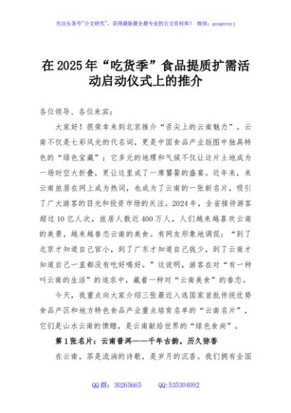 在2025年“吃货季”食品提质扩需活动启动仪式上的推介