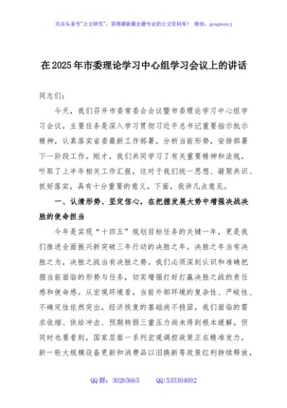 / 在2025年市委理论学习中心组学习会议上的讲话
