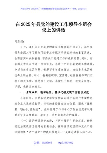 / 在2025年县党的建设工作领导小组会议上的讲话
