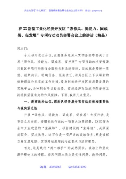 / 在XX新型工业化经济开发区“强作风、提能力、固成果、促发展”专项行动动员部署会议上的讲话(精品)