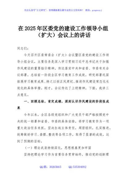 / 在2025年区委党的建设工作领导小组(扩大)会议上的讲话