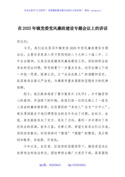 / 在2025年镇党委党风廉政建设专题会议上的讲话