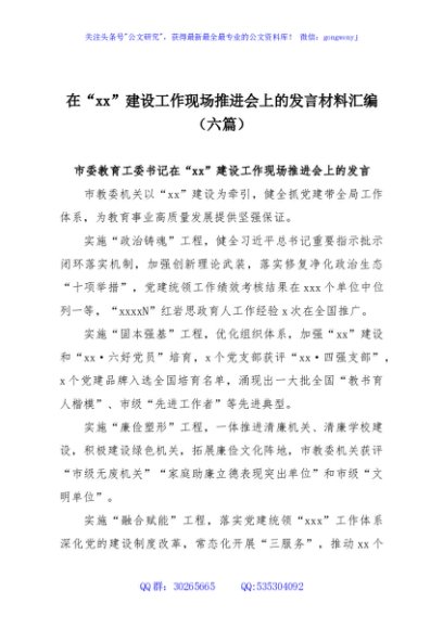 / 在“xx”建设工作现场推进会上的发言材料汇编(六篇)
