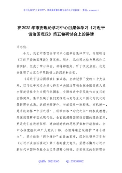 / 在2025年市委理论学习中心组集体学习《习近平谈治国理政》第五卷研讨会上的讲话