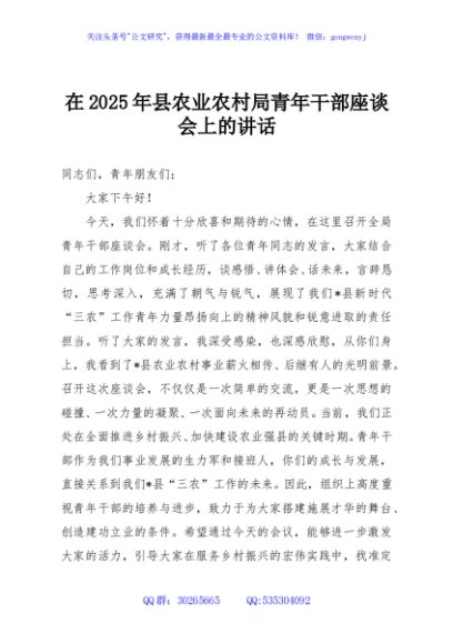 / 在2025年县农业农村局青年干部座谈会上的讲话
