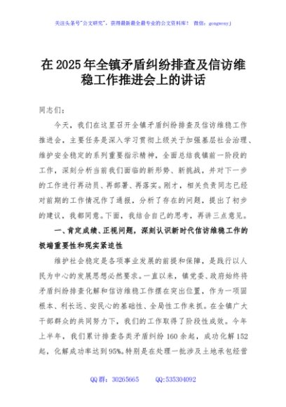 / 在2025年全镇矛盾纠纷排查及信访维稳工作推进会上的讲话