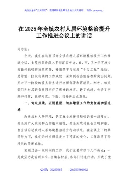 / 在2025年全镇农村人居环境整治提升工作推进会议上的讲话