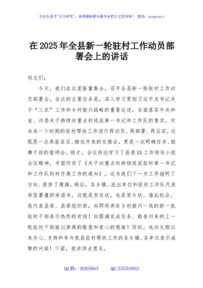 / 在2025年全县新一轮驻村工作动员部署会上的讲话