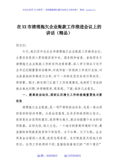 / 在XX市清理拖欠企业账款工作推进会议上的讲话(精品)