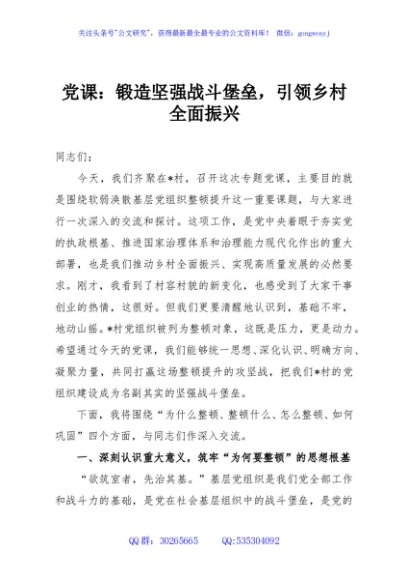 / 党课:锻造坚强战斗堡垒,引领乡村全面振兴