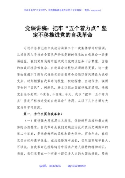 / 党课讲稿:把牢“五个着力点”坚定不移推进党的自我革命