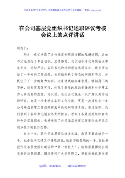 / 在公司基层党组织书记述职评议考核会议上的点评讲话