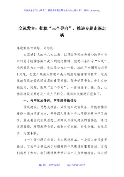 / 交流发言:把稳“三个导向”,推进专题走深走实