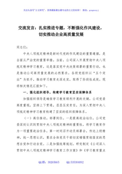 / 交流发言:扎实推进专题,不断强化作风建设,切实推动企业高质量发展