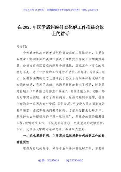 / 在2025年区矛盾纠纷排查化解工作推进会议上的讲话