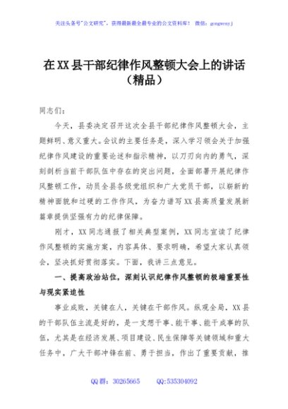 / 在XX县干部纪律作风整顿大会上的讲话(精品)
