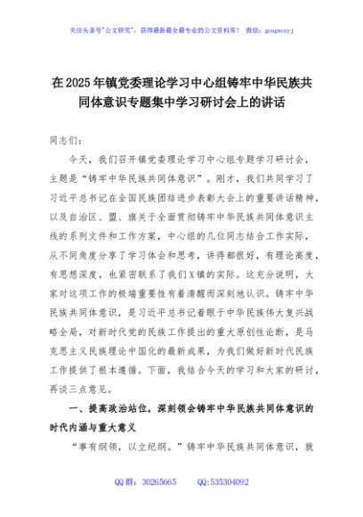/ 在2025年镇党委理论学习中心组铸牢中华民族共同体意识专题集中学习研讨会上的讲话