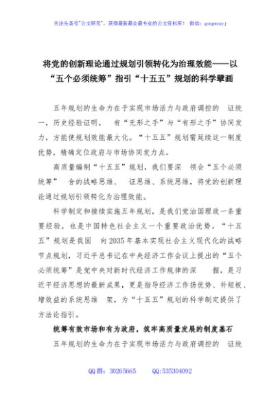 / 将党的创新理论通过规划引领转化为治理效能——以“五个必须统筹”指引“十五五”规划的科学擘画