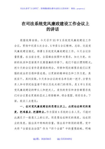/ 在司法系统党风廉政建设工作会议上的讲话
