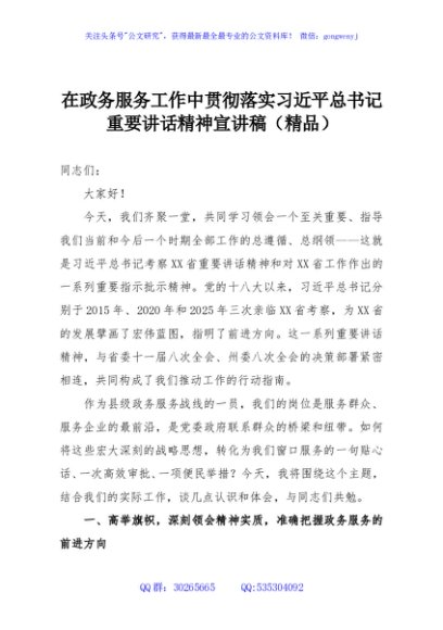 / 在政务服务工作中贯彻落实习近平总书记重要讲话精神宣讲稿(精品)