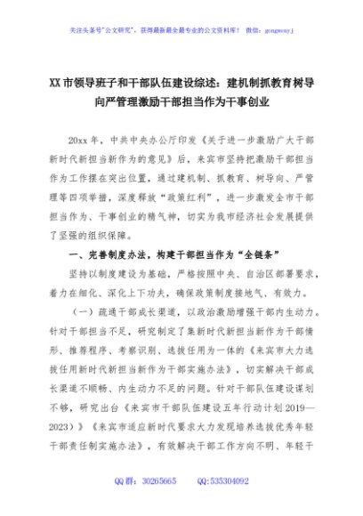 / XX市领导班子和干部队伍建设综述:建机制抓教育树导向严管理激励干部担当作为干事创业
