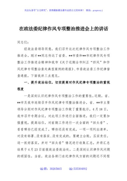 / 在政法委纪律作风专项整治推进会上的讲话