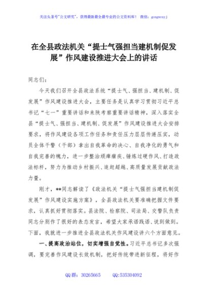 / 在全县政法机关“提士气强担当建机制促发展”作风建设推进大会上的讲话