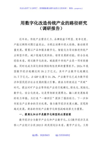 / 用数字化改造传统产业的路径研究(调研报告)