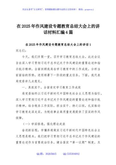 / 在2025年作风建设专题教育总结大会上的讲话材料汇编4篇