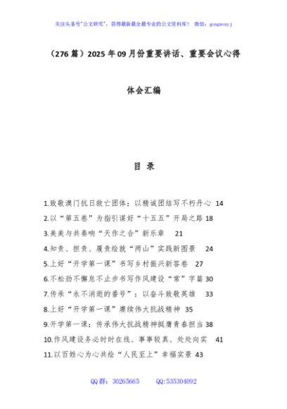 / (276篇)2025年09月份重要讲话、重要会议心得体会汇编
