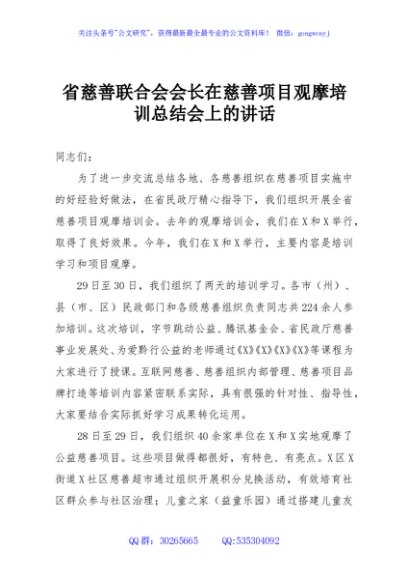 / 省慈善联合会会长在慈善项目观摩培训总结会上的讲话