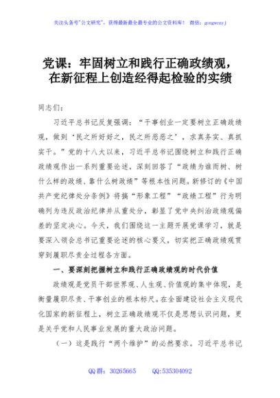/ 党课:牢固树立和践行正确政绩观,在新征程上创造经得起检验的实绩