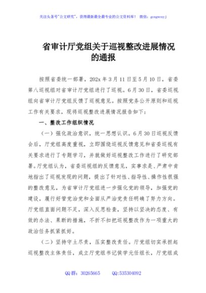 / 省审计厅党组关于巡视整改进展情况的通报