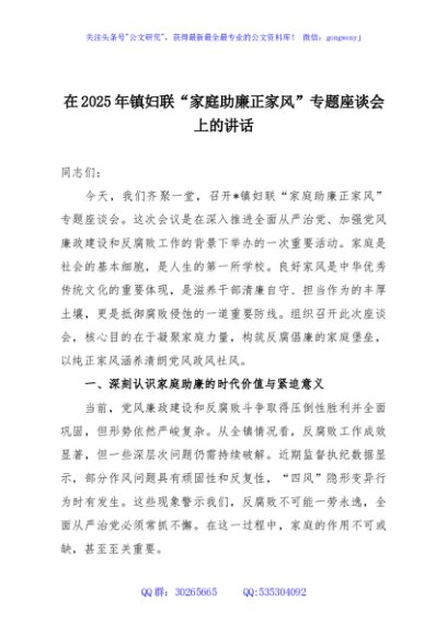 / 在2025年镇妇联“家庭助廉正家风”专题座谈会上的讲话