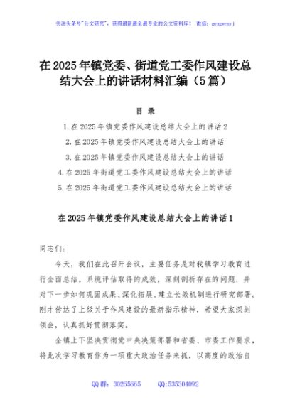 / 在2025年镇党委、街道党工委作风建设总结大会上的讲话材料汇编(5篇)