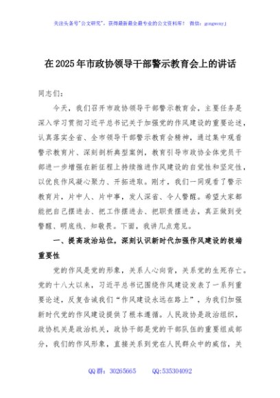 / 在2025年市政协领导干部警示教育会上的讲话