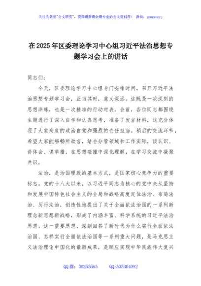 / 在2025年区委理论学习中心组习近平法治思想专题学习会上的讲话
