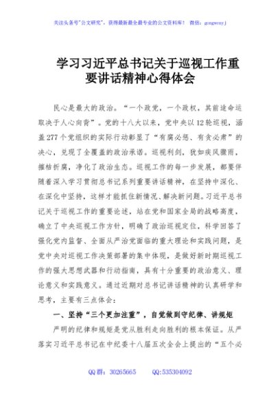 / 学习习近平总书记关于巡视工作重要讲话精神心得体会