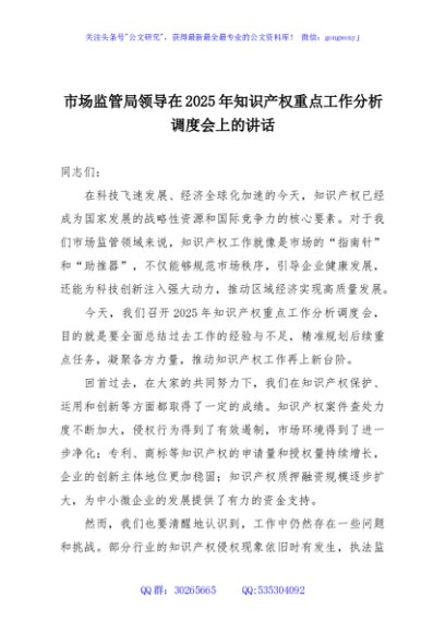 / 市场监管局领导在2025年知识产权重点工作分析调度会上的讲话