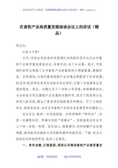 / 在畜牧产业高质量发展座谈会议上的讲话(精品)