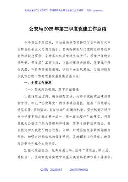 / 公安局2025年第三季度党建工作总结