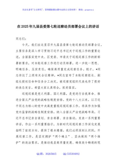 / 在2025年九届县委第七轮巡察动员部署会议上的讲话