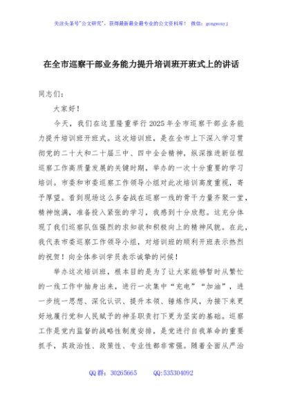 / 在全市巡察干部业务能力提升培训班开班式上的讲话