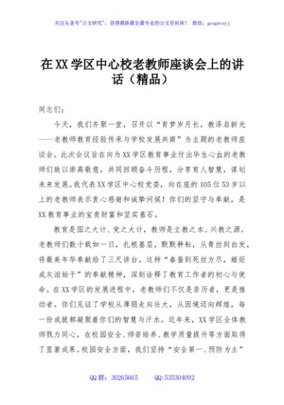 / 在XX学区中心校老教师座谈会上的讲话(精品)