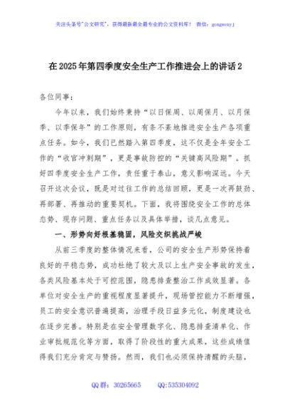 / 在2025年第四季度安全生产工作推进会上的讲话2