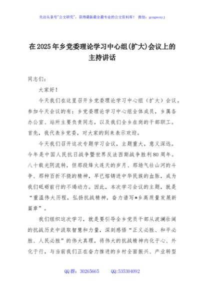 / 在2025年乡党委理论学习中心组(扩大)会议上的主持讲话