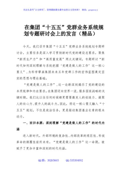 / 在集团“十五五”党群业务系统规划专题研讨会上的发言(精品)