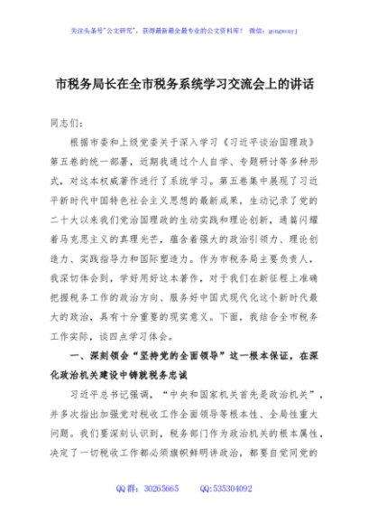 / 市税务局长在全市税务系统学习交流会上的讲话